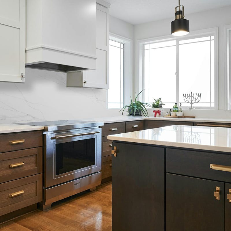 - A kitchen remodel featuring elegant cabinetry and countertops
